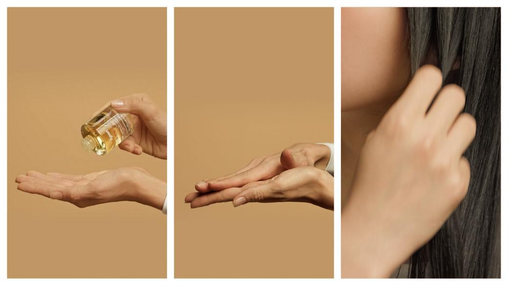 On dry hair: Dispense 1-2 drops of oil into the palm. Warm between hands, then smooth or scrunch through the mid-lengths and ends, adding more as needed, for instantly smoother, shinier hair.